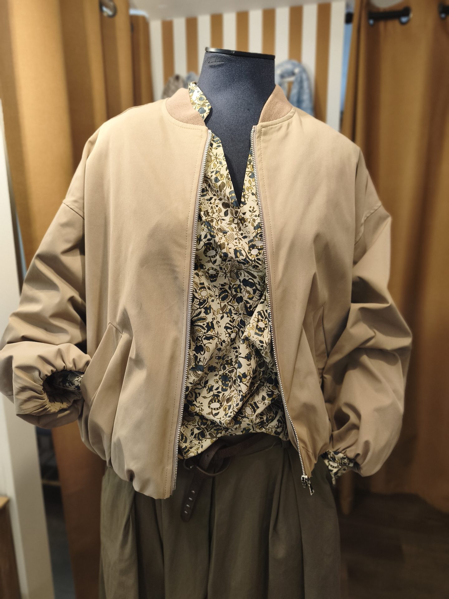 Blouson esprit bomber, revisité dans une toile beige aux subtils reflets. Le col côtelé, la fermeture zippée offrent une allure sport chic. Une pièce de tous les jours, à porter aussi bien avec un jean qu’une robe fluide pour jouer le contraste.