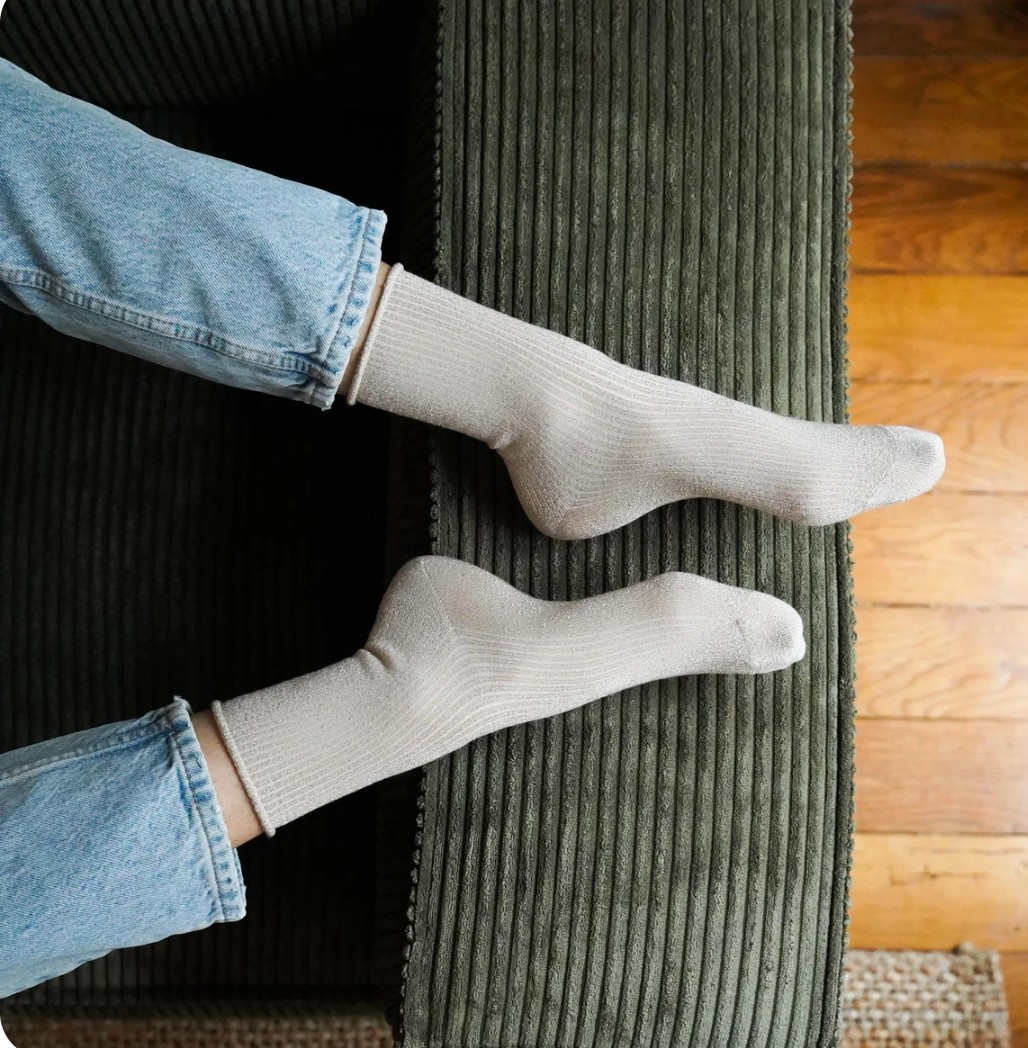 Le côté extensible permet aux chaussettes d’épouser la forme de tous les pieds, petits et grands.