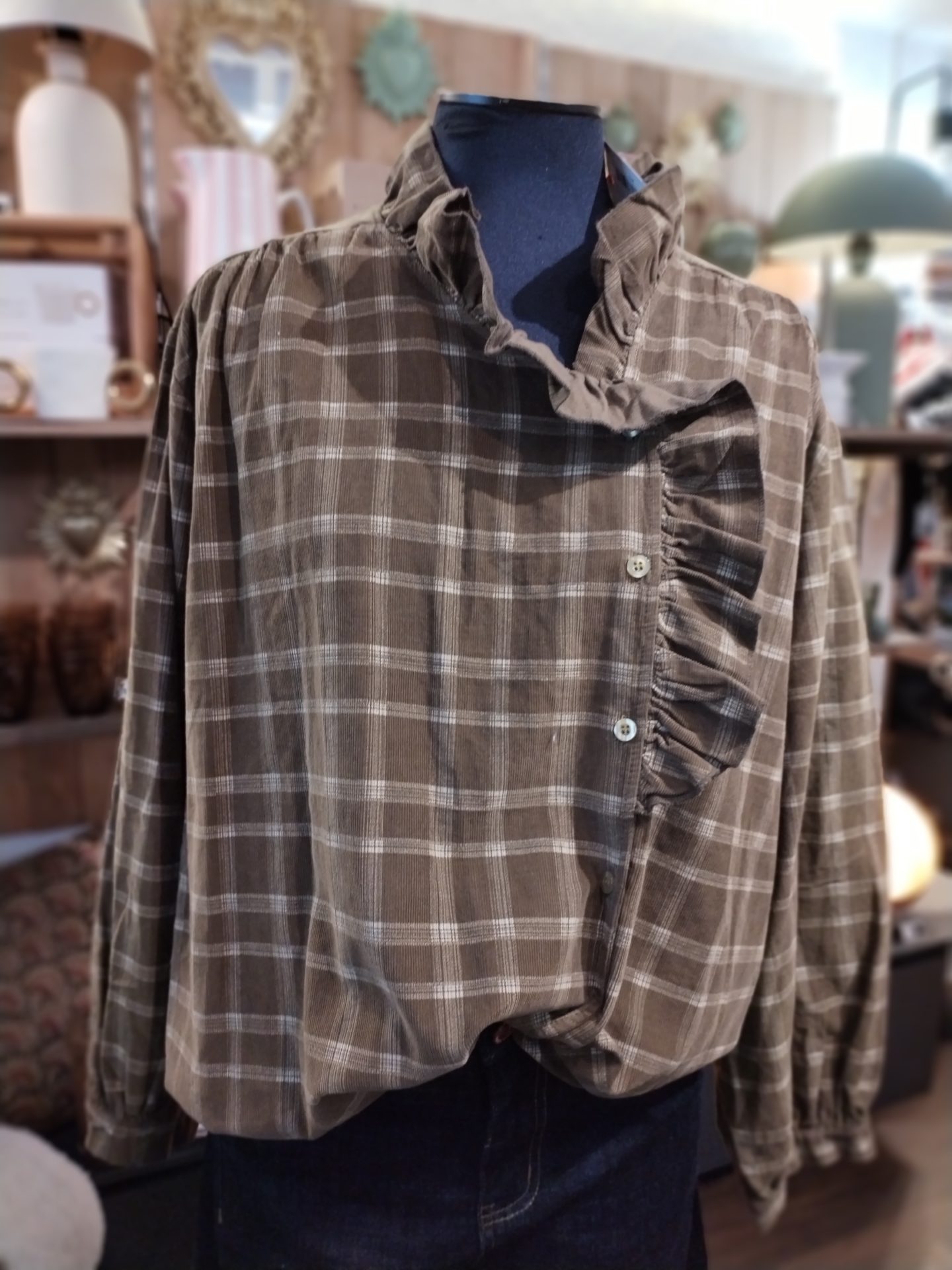 • Blouse en velours à carreaux avec un jabot Johanna Paris