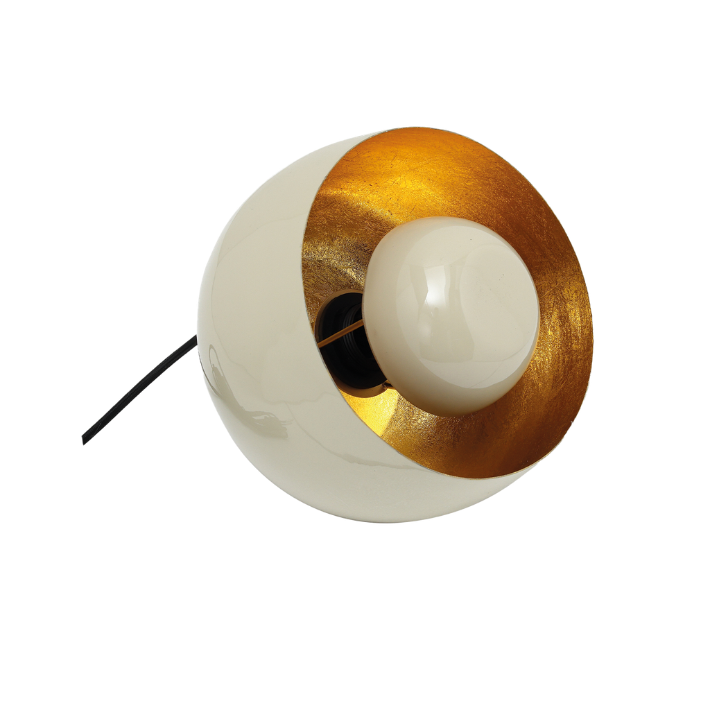 Lampe cloche en métal – Lumière douce et présence brute Cette lampe en métal se pose partout, au sol comme sur un meuble. Son large anneau assure une parfaite stabilité, tandis que son intérieur doré réfléchit une lumière douce et indirecte. Sous la cloche, un petit capuchon protège l’ampoule pour une ambiance tamisée, sans éblouir. Simple, pratique, et pleine de caractère.