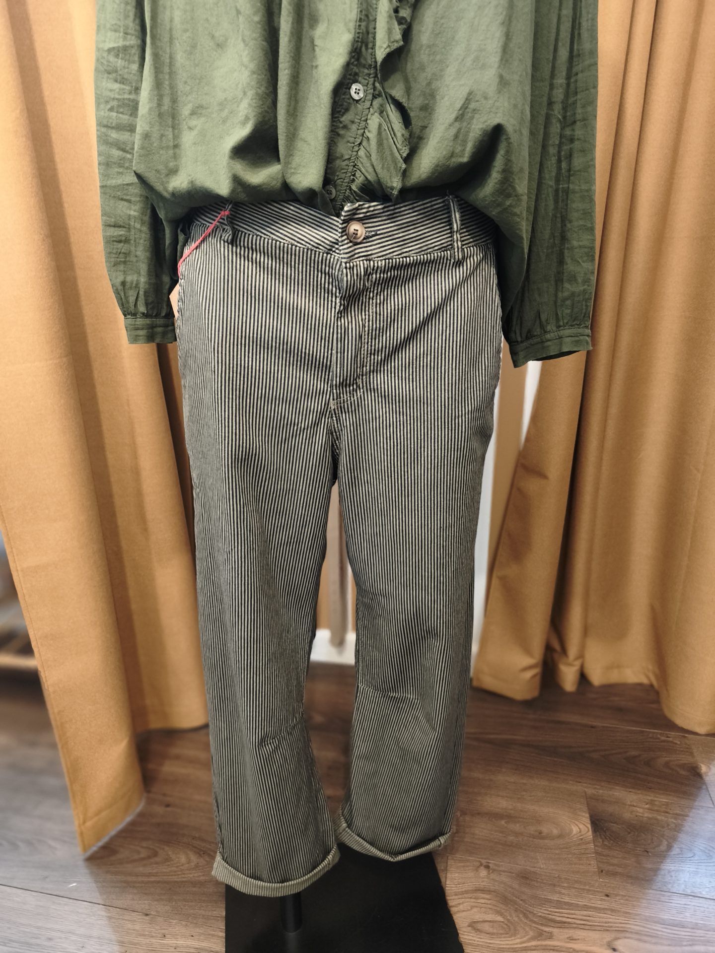 Affirmez votre style avec ce pantalon en coton rayé,une pièce forte.
