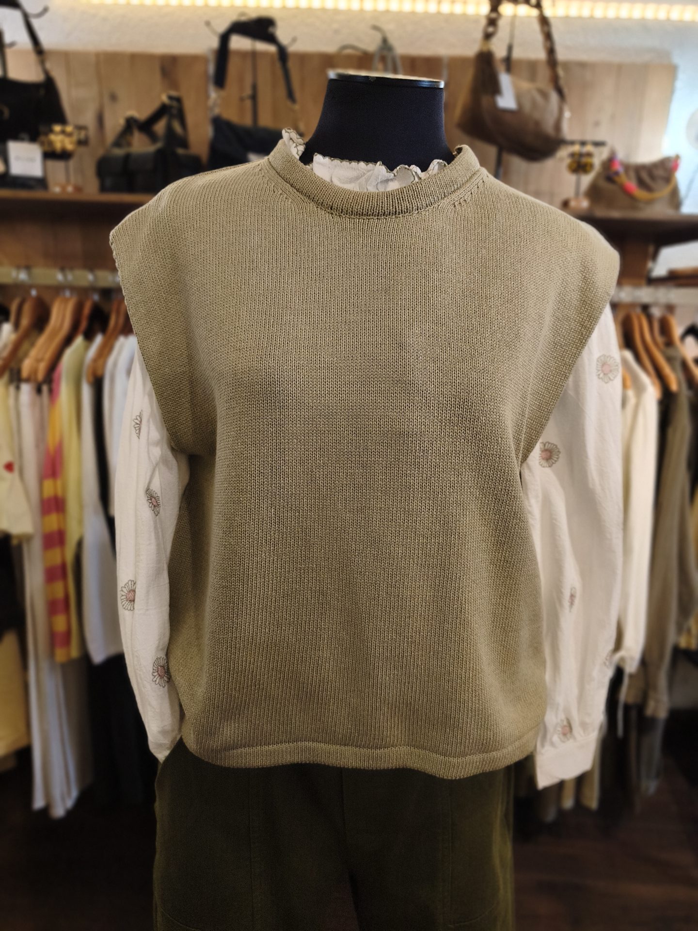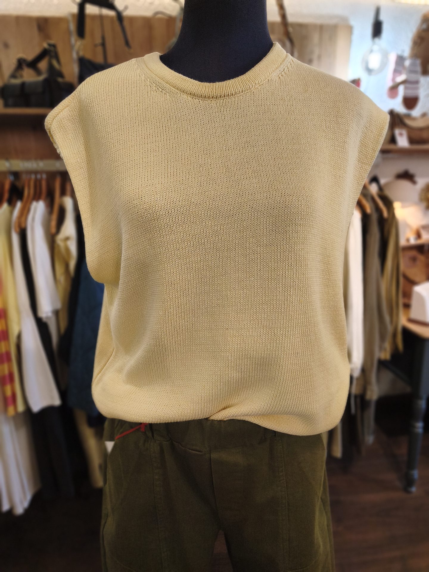 Féminin et décontracté, à porter à même la peau où avec un chemisier à manches longues, ce pull sans manche sera votre meilleur allié pour toutes vos sorties estivales!