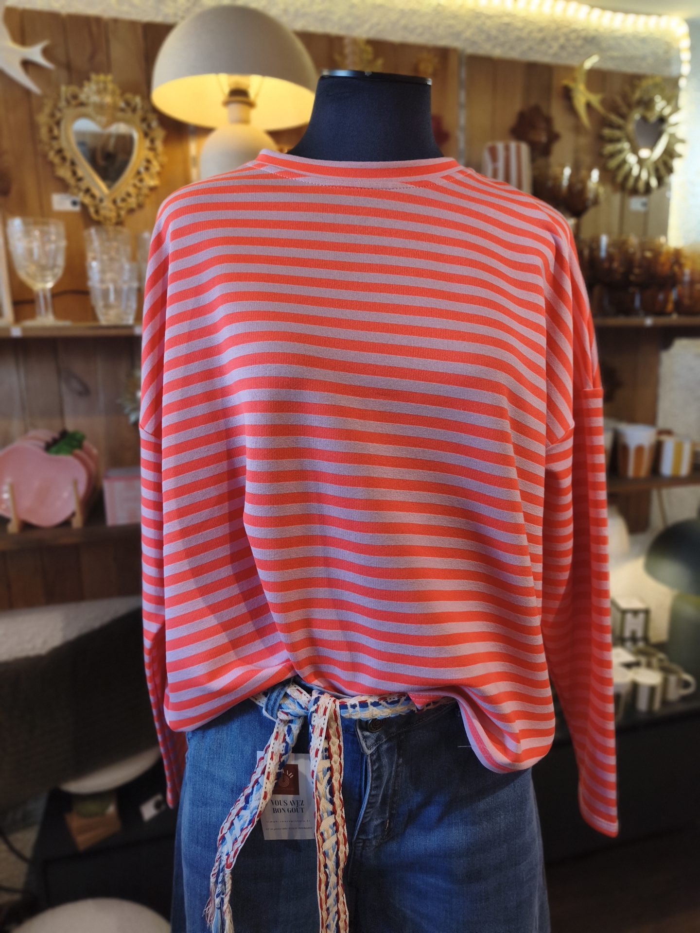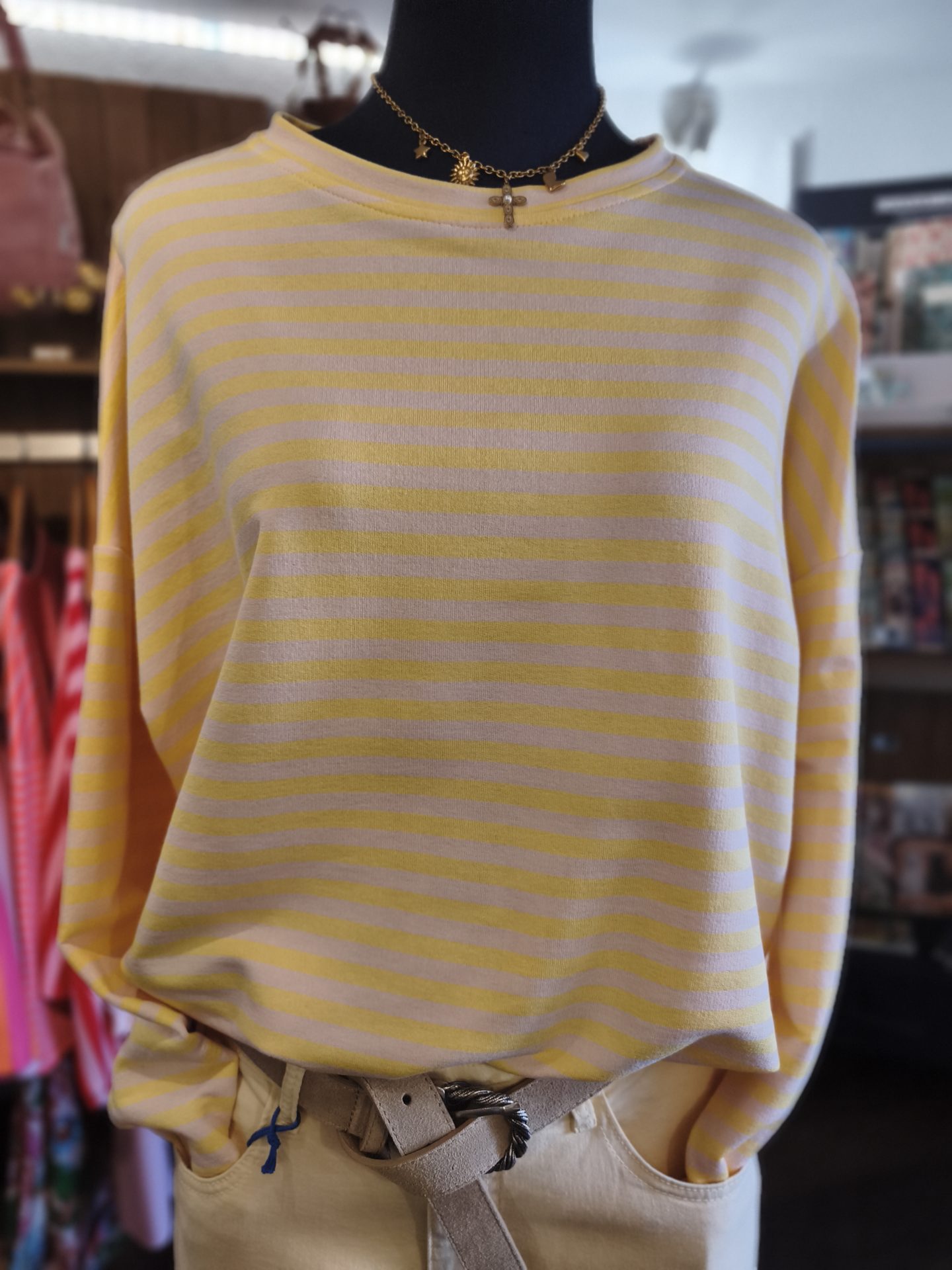 Ce top en coton séduit par son motif intemporel à rayures, apportant une touche douce et lumineuse à la silhouette. Sa coupe ample et fluide apporte un confort optimal au quotidien.
