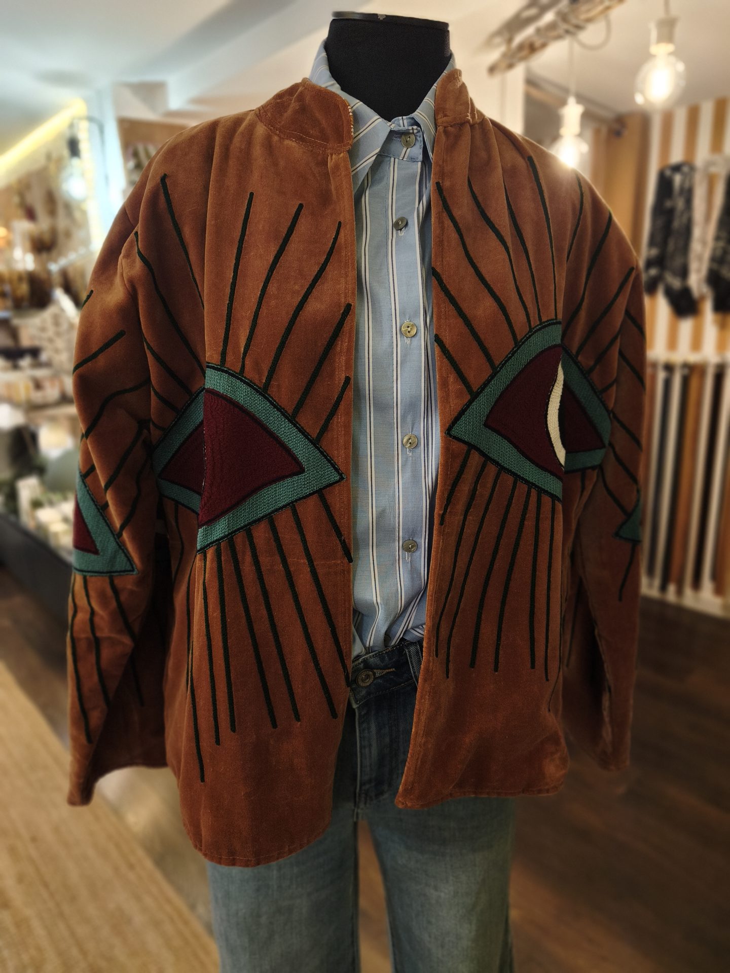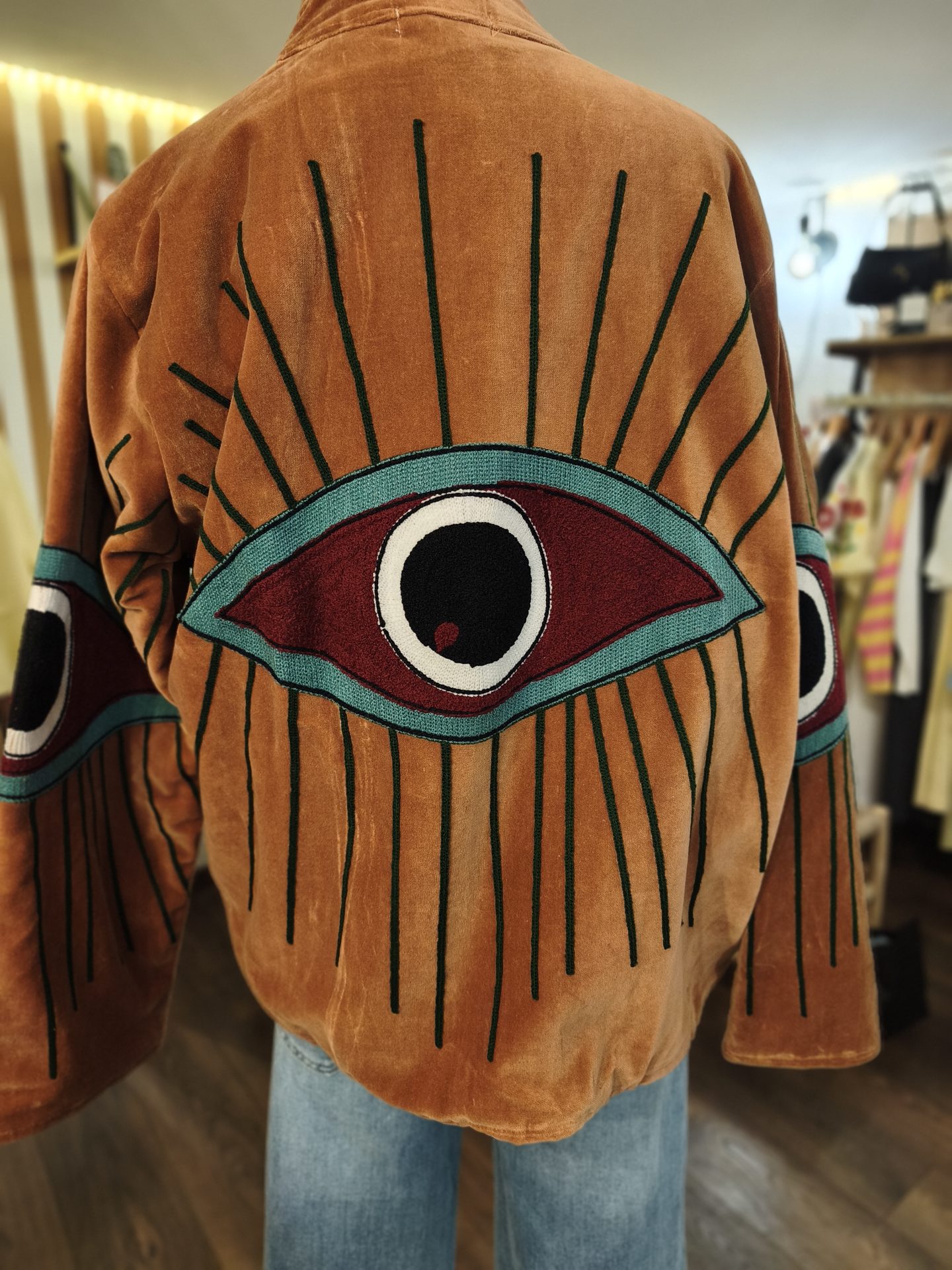 Veste en panne de velours à la coupe droite entièrement brodé à la main